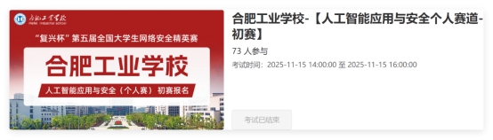 同日,由国家网络空间安全人才培养基地主办、CIPS之家承办的第五届“复兴杯”全国大学生网络安全精英赛初赛圆满收官。我校创下参赛规模与竞技成绩双重新高,152名学子报名三个赛道,30人成功晋级复赛,整体晋级率达 19.7% 。