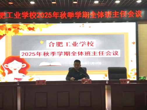 2025年11月19日下午,合肥工业学校在图书馆四楼报告厅召开2025年秋季学期全体班主任会议。会议围绕案例分析、政策传达、问题对策研讨及重点工作部署四大核心,为班主任明晰方向、凝聚合力,夯实学校德育工作根基。全体班主任、宿舍主管参会,校党委委员、副校长聊宗龙,安保处负责人黎扬出席,学生处处长杨晓宁主持。