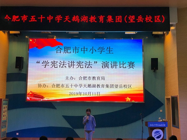 为进一步深入开展宪法教育,引导学生学习法治知识,增强学生法治意识,弘扬宪法精神,推动宪法实施,2019年10月11日下午,合肥市教育局开展了中小学生“学宪法 讲宪法”演讲比赛。服饰学部桂紫琪同学代表我校参加角逐高中组比赛。