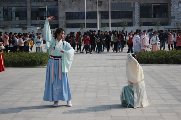 清明节来临之际,合肥工业学校 “归鸿汉服社” 学生社团与服饰学部16级高职1班携手合作,进行了一场汉服汉礼文化展演活动。