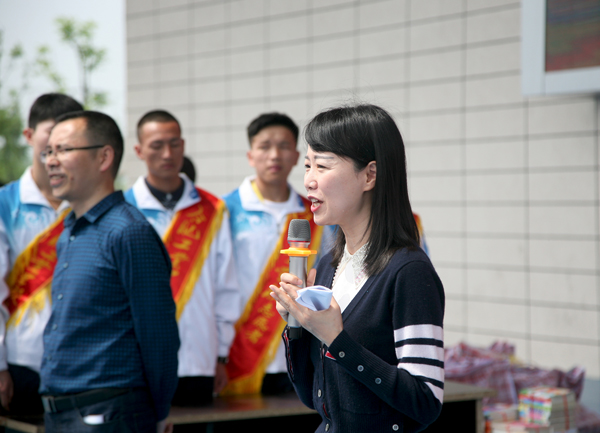 安徽广播电视台《第一时间》栏目著名节目主持人吴薇也来到捐赠仪式现场,她被合肥工业学校8000名师生的捐赠场面所震撼,以“感动、感谢、感恩”发表了热情洋溢的讲话。她说《映山红助学》行动举办已有11年了,这个活动之所以能坚持这么久是因为它是爱心、正能量的传递。她非常感谢合肥工业学校师生捐出的爱心,表示《第一时间》栏目组会尽快把捐赠的图书文具送到贫困山区的孩子们手里。
