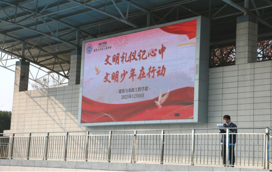 仪式最后,建工学部副主任张西岳号召全体同学以此次活动为起点,真正将文明礼仪内化于心、外化于行,争做文明校园的建设者。