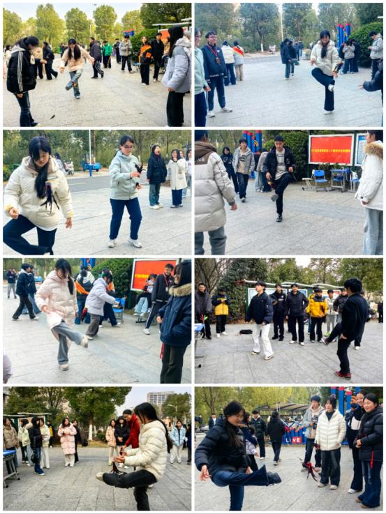 作为“跃动青春”系列的收官之作,本次活动巧妙呼应了系列“全员参与、快乐运动”的初衷。比赛设团队计数赛与个人挑战赛两个项目。团队赛中,各队队员围成一圈,毽子在脚尖、膝间轻盈起落,配合默契的呼喊与偶尔惊险的救球引得阵阵喝彩;个人赛场上,选手们各显身手,五彩的毽子如蝴蝶般在身周翻飞,展现了良好的身体协调性与专注力。现场既有紧张激烈的角逐,更有此起彼伏的加油与欢笑,冬日的校园被青春的活力彻底点燃。