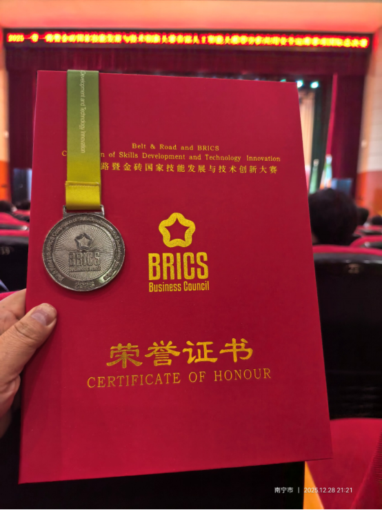 2025年12月28日,2025年“一带一路”暨金砖国家技能发展与技术创新大赛首届人工智能大模型分析应用安全运维赛国际总决赛在广西工业职业技术学院圆满收官。我校代表队凭借出色发挥荣获银奖,为2025赛季征程画上圆满句点。