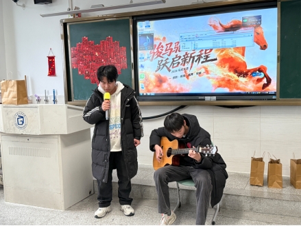 寒意挡不住青春热忱,教室内一派热火朝天的景象。本次活动创新融合传统文化与潮流元素,亮点纷呈:才艺展示环节,深情婉转的歌曲演唱、动感十足的舞蹈表演、慷慨激昂的诗歌朗诵轮番上演,吉他弹唱等器乐展演尽显学子风采,师生携手参与、默契配合,欢呼声与掌声此起彼伏,彻底驱散了冬日的寒冷。