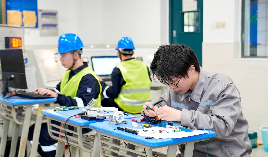 竞赛过程中,各参赛选手精神饱满、沉着应战,在规定时间内完成各项竞赛任务。无人机操控与维护赛项面向航空交通相关专业,赛场上选手们熟练操控无人机组装检修技能,精准完成飞行、目标识别等操作,展现出扎实的操控技巧与故障处理能力;工业通信与智能控制系统集成与维护赛项面向自动化等相关专业,比赛中选手们默契配合,有条不紊地进行参数配置、通信调试及故障排查,充分彰显了新时代中职学子的专业素养与协作精神。