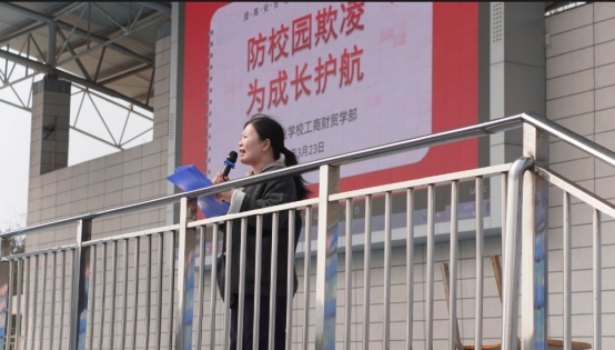 3月23日上午,工商学部在操场隆重举行“防校园欺凌 为成长护航”主题升旗仪式。学部全体师生参加,仪式由学管副主任葛小莞主持,旨在向校园欺凌亮明“零容忍”态度,筑牢校园安全防线。