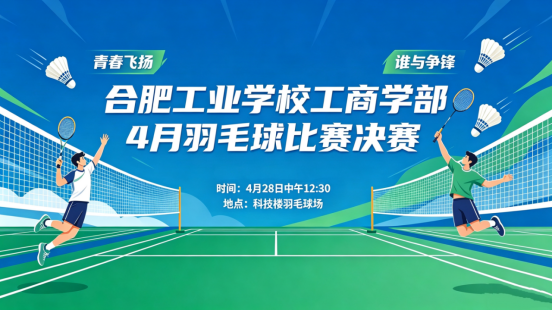 为深入贯彻落实教育部《关于全面推进健康学校建设的指导意见》,工商学部始终将体育作为落实“健康第一”理念的核心载体。4月28日下午,学部羽毛球师生友谊赛决赛在科技楼羽毛球场激情开打。经过近一个月的激烈角逐,男子组与女子组的冠、亚、季军最终尘埃落定,为本次比赛画上圆满句号。