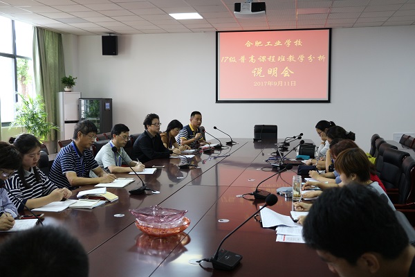 新学期伊始,合肥工业学校对17级普高课程班教学工作早做谋划,于9月11日在建工学部一楼会议室召开教学分析说明会,分管教学负责人曹文华、相关处室学部负责人以及17级普高课程班全体任课教师等人员参加会议。