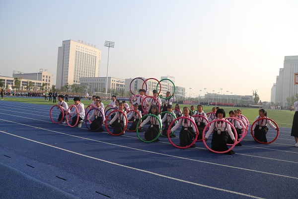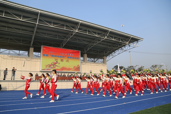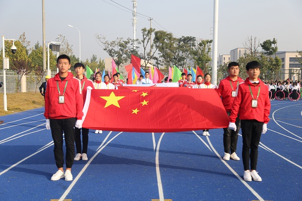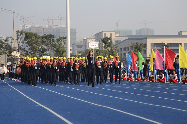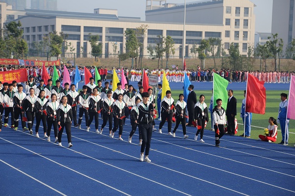 伴随着激昂的运动员进行曲,入场仪式开始。国旗护卫队、校旗护卫队、运动会会旗,鲜花、彩旗方阵,教师旗袍协会方阵,三个学部的教职工代表方阵、班级代表方阵入场。他们意气风发,蓬勃向上;他们团结一致,激情飞扬。在本次运动会中,他们将要让激情点燃生命,让梦想展翅飞翔;他们将把拼搏的汗水挥洒赛场,用青春的微笑拥抱胜利的辉煌。预祝运动健儿们取得优异成绩!