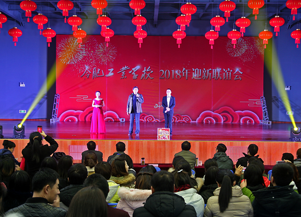 2017年12月29日下午,合肥工业学校科技楼三楼礼堂张灯结彩、喜气洋洋,2018年迎新联谊会隆重举行,400余名教职工欢聚一堂、共庆元旦。