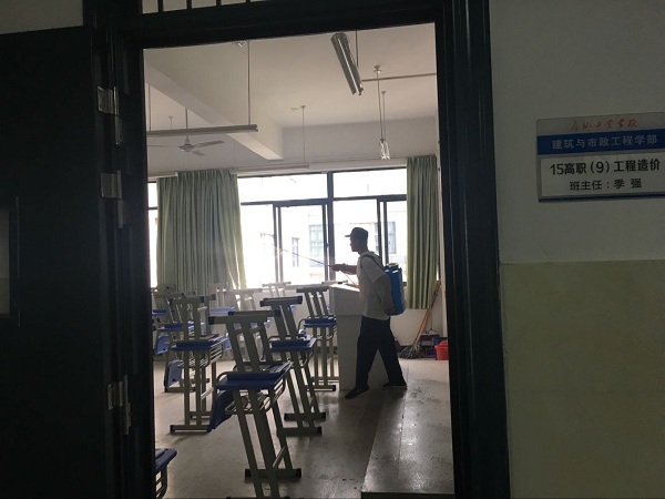 时值暑假,为保证新学年的教学环境和所有校舍的卫生安全,学校总务处安排了全校范围的校舍集中卫生消毒工作。
