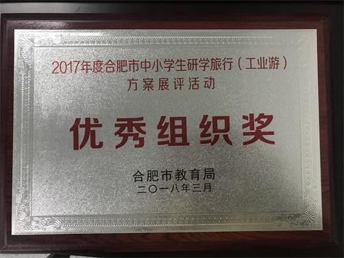 学校因此荣获2017年度合肥市工业游活动优秀组织奖,活动的开展,不仅增强了同学们之间的集体意识,也增进了老师和同学们之间的感情,更是一次成功的红色育人活动。