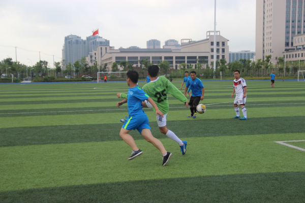 整场比赛精彩纷呈、跌宕彼伏,队员们热情投入、脚下生风、英姿勃发,双方你来我往,拼抢激烈,比赛一度陷入僵局。上半场接近尾声,合肥工业学校代表队朱世宏老师利用角球机会拔得头筹,双方争夺更加激烈。下半场,安徽经视第一时间代表队觅得机会,攻入一球,将比分扳平。随着终场哨响,双方以1:1的比分握手言和,两队球员合影留念。