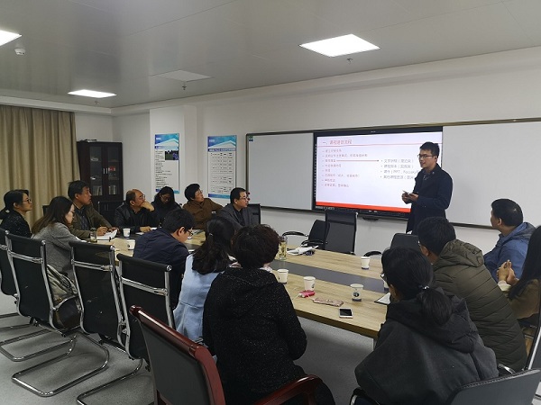 张其旺主任强调在做精品课程建设之前,先要本着“精简内容、降低难度、突出实用”的原则处理教材,选取最具典型性、代表性和实用性的知识点,使精品课程具备实用性与推广性,达到资源共享、真正服务于我校教育教学的目的。超星公司胡永超老师就精品课建设的具体要求做了详细阐述,老师们认真聆听,互动热烈。