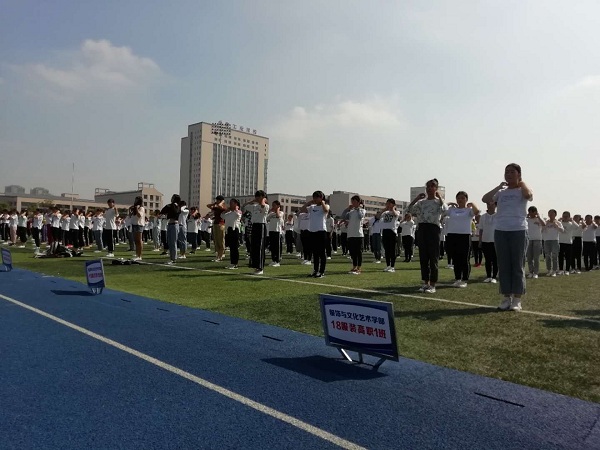 骄阳下,服饰与文化艺术、建筑与市政工程和经管与信息技术三个学部71个班级的3428名新生依次进行了广播操、礼仪操展示,一张张略显稚气的笑脸自信满满,一个个整齐有力的动作朝气蓬勃,一支支充满活力的队伍是校园里最靓丽的风景。