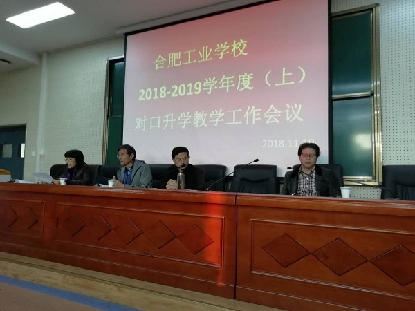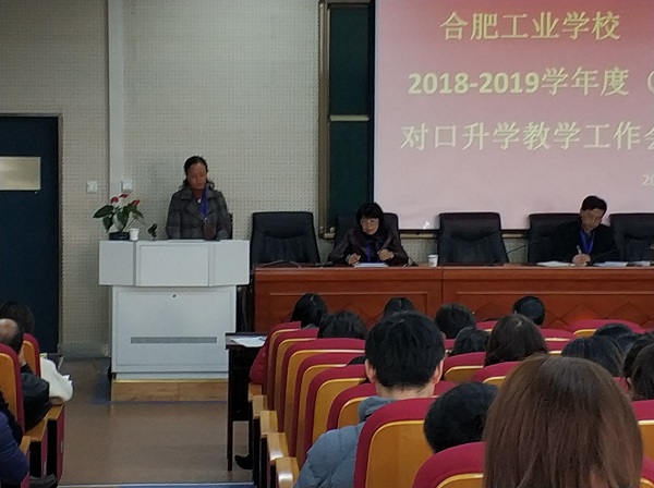11月19日下午3点,合肥工业学校对口升学班教学工作会议在经信学部三楼阶梯教室隆重召开。校党委书记、校长王靖,副校长曹文华,各学部和有关处室负责人及学校首届专业和学科负责人,全体对口升学任课教师近百人参加会议,大会由教务处处长蒋月珍主持。
