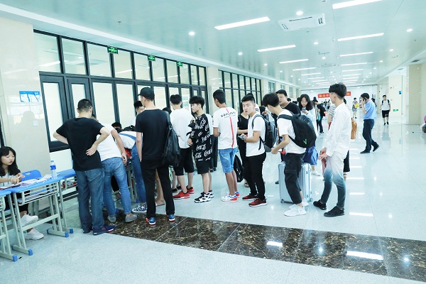 迎新过程中,学校推行人性化举措:新生报到咨询、登记注册、办理住宿采用一站式服务,集中在科技楼一楼大厅统一办理,环环相扣、流程简洁;分配寝室、学生入住分别在各学生公寓楼;校门口、报到处、学部楼、宿舍楼、后勤保障楼等关键位置均安排专人引导,并张贴醒目标志,避免家长学生多跑冤枉路;校园内外加强安保力量,疏导车辆、维持秩序,确保新生报到安全有序。尽管报到现场人数众多、人员密集,但秩序良好、忙而不乱,全体班主任和工作人员的热情服务、细致解答,赢得新生和家长的一致认可。截至26日下午,共计有3408名新生报到入学。