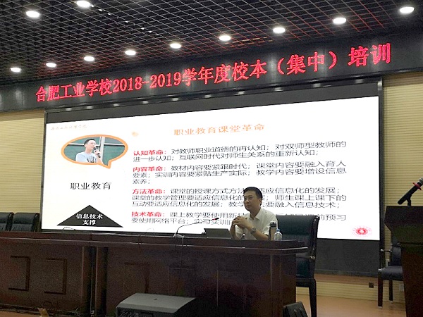 为加强师德建设,不断更新教师职业教育教学观念,提高教师专业化水平,8月 20日——8月26日,合肥工业学校面向全体教职工,特别是广大一线教师“量身定制”了为期7天的学年度校本集中培训。在开班仪式上,教研室主任张其旺介绍了培训安排,副校长曹文华提出了总体要求。