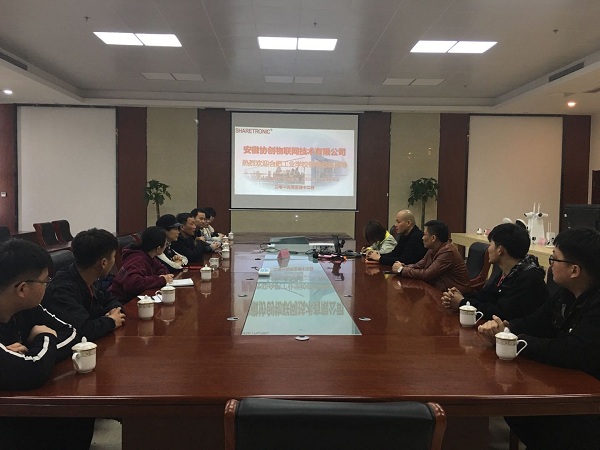 为加强物联网专业建设,促进校企合作的进一步深化,3月12日上午,我校党委副书记、副校长赵华贵带领招生就业处副主任赵平、建工学部副主任邓传国、经信学部物联网专业2位老师和6名同学,赴高新区安徽协创物联网技术有限公司进行校企合作深入调研。