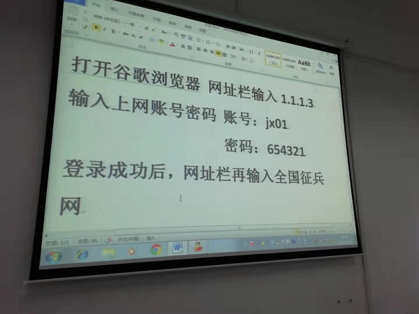 一年一次的学生兵役网上登记是我校一项重要的爱国主义教育活动,旨在增强学生国防观念。我校领导高度重视,有关处室和学部密切配合,对照兵役登记条件,摸排信息,统计名单,并通过多种渠道宣传《中华人民共和国兵役法》和《征兵工作条例》,让学生们了解政策,增强意识。 3月14日上午,在七里塘社区专武干事季冬等13名社区工作人员的现场指导下,来自于经信、建工和服饰三个学部,年满18周岁且没有注册登记的在校男生,分学部、分批次顺利完成了2019年兵役登记工作。