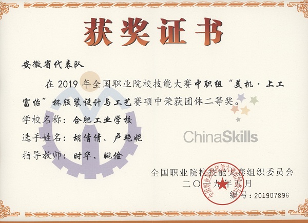 5月20日至22日,2019年全国职业院校技能大赛中职组“美机·上工富怡”杯服装设计与工艺赛项在重庆工商学校举行。我校代表队在副校长曹文华带领下,作为安徽省领队学校,一路稳定发挥,过关斩将,进入决赛。