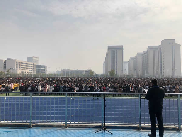 学生代表经信学部17高职9班崔静同学作国旗下演讲,号召大家用“收心、决心、信心、爱心、用心”开启愉快的学习生活之旅,作为新时代的学生,应当弘扬传统美德,争做文明使者;倡导同学们做到文明用语,互帮互助,尊敬师长,团结友爱。