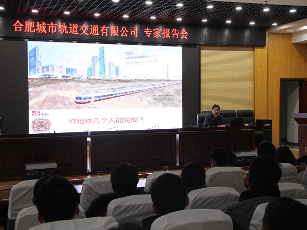 刘宏主任首先从地铁的形成过程、历史发展及施工过程等方面,通过丰富详实的图例,生动地讲述了城市轨道交通的概况,激发了学生们的兴趣;接着从本地实际情况出发,介绍了合肥轨道交通线路的规划和发展状况。他指出,合肥赶上了好政策、好时机,成为了第三批轨道交通城市。从目前发展来看,合肥轨道交通运营情况良好,做到了监控严格、调度有序、安全运营,树立起了城市公共服务的新标杆。最后,刘主任简要介绍了合肥轨道交通有限公司的基本情况以及人才需求情况,表达了加强校企合作,鼓励专业院校学生加入公司的殷切希望。