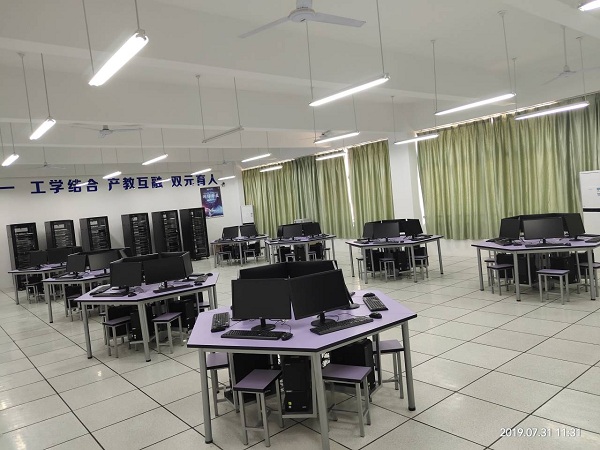在资产报废处置、场地清理的同时,我校开展实施2019年各级财政项目,经信学部新建网络技术综合实训室和综合布线实训室各一间,实训室建设实施充分考虑实训教学和企业岗位相结合,确保施工质量,打造安全、环保和实用的实训环境。