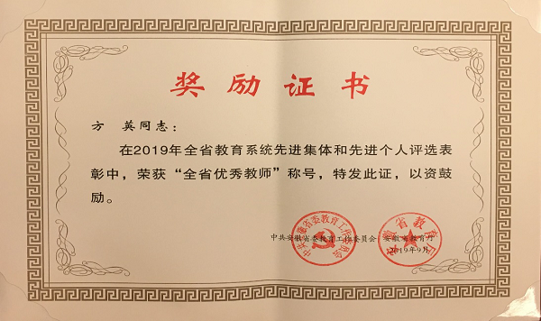方英老师始终把教书育人做为自己的人生追求,在平凡的岗位上,干着平凡的工作,用平凡的事情去实现自己心中的梦想。她在孩子们心中是妈妈一样的知心人;她带领学生先后获得20多项国家和省级大奖;她是素质教育的引领者、实践者。她最大的快乐,就是站在三尺讲台上,几十年如一日,无怨无悔,这是一份值得尊重和骄傲的坚持和追求。