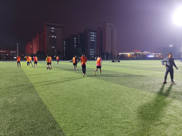 每天晚上校园操场上总会出现一群矫健的身影,40多位小球员在刘欣教练的带领下,热身、传球、配合,对抗,他们时而奔跑,时而呐喊,为夜晚的校园增添了一道亮丽的风景。连续两周每天重复的训练,小球员们从不叫苦叫累,依旧刻苦训练,积极备战,希望能以最好的实力和状态迎战联赛,力争在联赛中取得好成绩,为校争光。