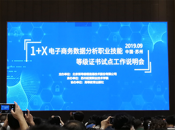 2019年9月11日,教育部职成司下发了《关于做好第二批1+X证书制度试点工作的通知》(教职成司函【2019】89号)文件,公布了第二批1+X试点证书范围和试点院校范围、条件。第二批试点证书包括电子商务数据分析、网店运营推广、工业机器人操作与运维、工业机器人应用编程、特殊焊接技术、智能财税、母婴护理、传感网应用开发、失智老人照护、云计算平台运维与开发。我校根据文件要求,对照申报条件,综合考虑学校现有专业情况,申报了电子商务数据分析、网店运营推广、传感网应用开发和智能财税等4个证书。最终经教育部审核批准,我校被列为“电子商务数据分析”和“传感网应用开发”证书试点学校。