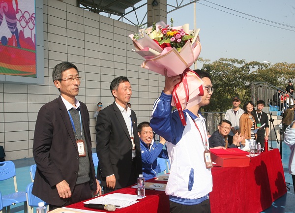 副校长孙健宣布本届运动会会徽设计获奖者名单。校党委书记、校长王靖宣布运动会开幕,预祝我校2019年秋季田径运动会圆满成功。