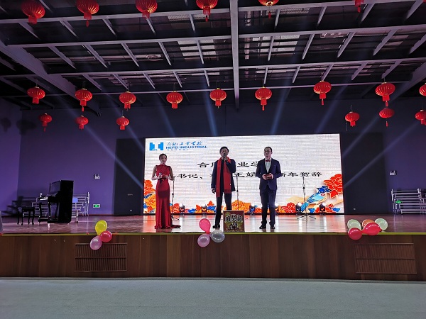 入场签到后,主持人宣布晚会开始。首先,校党委书记、校长王靖发表了热情洋溢的新年致辞,回顾了2019年我校取得的各项成绩,展望了2020年我校发展的美好前景,并向全体教职员工送上新年的祝福。