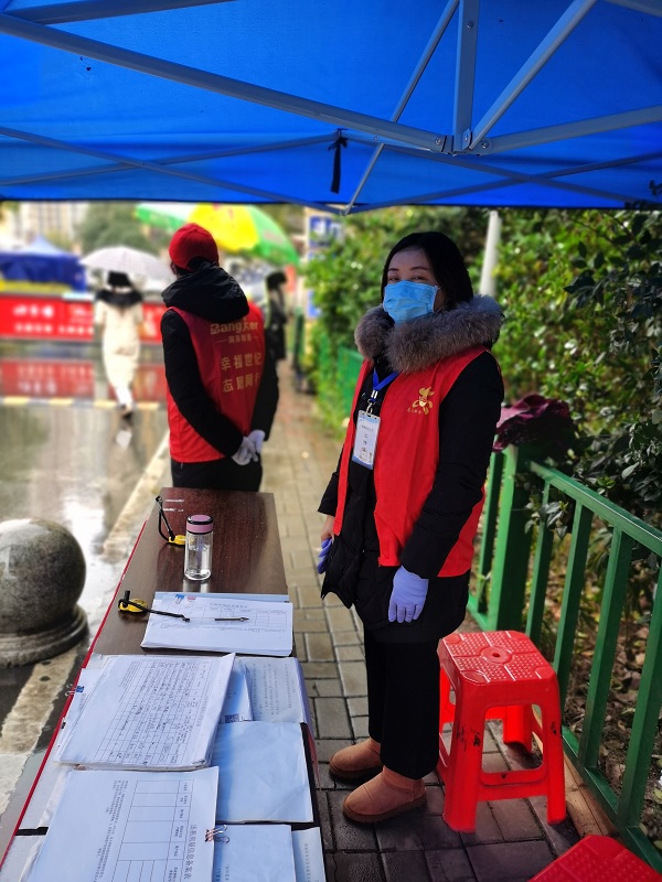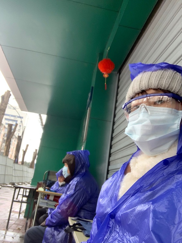 吕珊珊: “昨天小红棚吹翻了,支架断了,真切的体会了一次风餐露宿,感觉我们能在家里看着电视,玩着手机,吃上热乎乎的饭菜真是一件幸福的事”“志愿者已经奋战多日,略显倦怠,下沉党员承担了较重的工作任务……但工作环境慢慢变好,小红棚变成了集装箱简易房,配了电水壶和电暖器,目前总体情况比较顺利。”