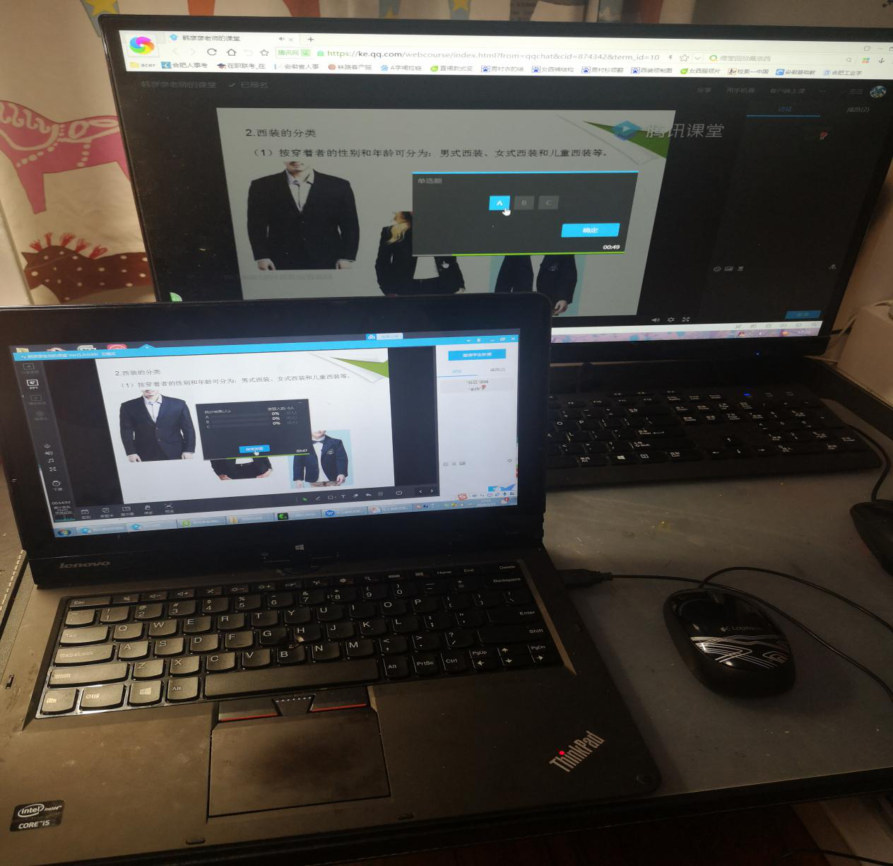 为了更快熟悉上课软件和了解学生的使用界面,老师同时使用教师版和学生版互相调试。