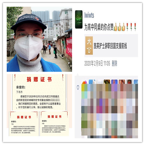 丁志方:“现在对盼望疫情早日结束的愿望愈发强烈,向往脱下口罩自由呼吸的感觉。可以想象医务工作者在治疗新冠肺炎患者是多么不容易……疫情无情人有情,一方有难八方支援。远在英国的高中同桌得知疫情后,毅然决然辞去英国工作申请加入武汉抗疫工作……回家后和孩子们分享英国同学的事迹……鼓励孩子捐出自己的零花钱,以此方式来为疫情贡献一份爱心。”
