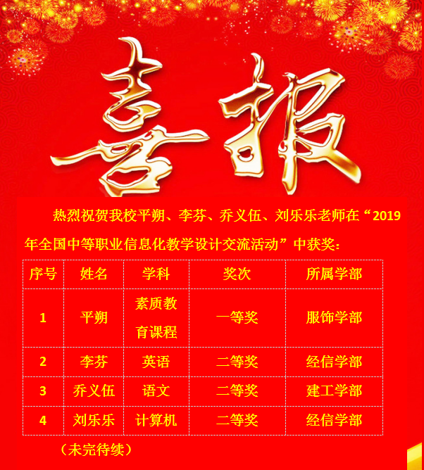 热烈祝贺我校教师在2019年全国中等职业学校信息化教学设计交流中获奖