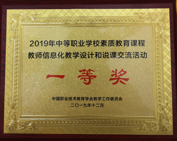 近日,由中国职业技术教育学会主办,高等教育出版社承办的2019年全国中等职业学校素质教育课程教师信息化教学设计和说课交流活动在郑州圆满结束。我校平朔老师以过硬的教学基本功和突出的综合素质,力压群芳,荣获一等奖,可喜可贺!