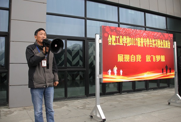 下午1:40,校企见面会在科技楼门前广场举行了简短的开幕式,开幕式由校招生就业处赵平主持,校党委副书记、副校长赵华贵在会上致辞。赵华贵首先向与会企业代表致以深切的问候,对他们的到来表示感谢,对校企交流、合作共赢的平台共建表示支持。向即将走向实习岗位的同学们提出了殷切的期望和要求,希望同学们把握机会,在今后的实习岗位上展现自我、放飞梦想。