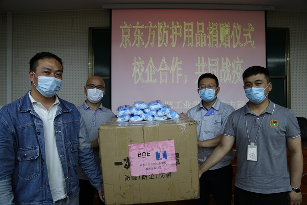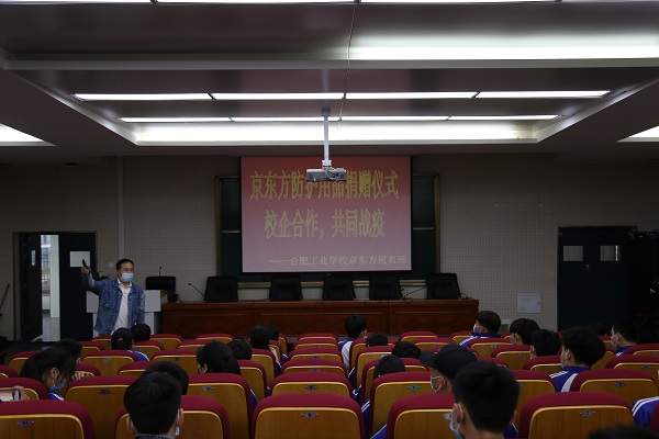 5月14日下午,经信学部三楼阶梯教室,我校18级京东方冠名班的师生们迎来了一场特殊的活动——京东方新冠防护用品捐赠仪式。京东方光电科技有限公司人力资源部张琳科长、徐勇主管,经信学部副主任章曙滨参加活动。校招生就业处副主任赵平主持。