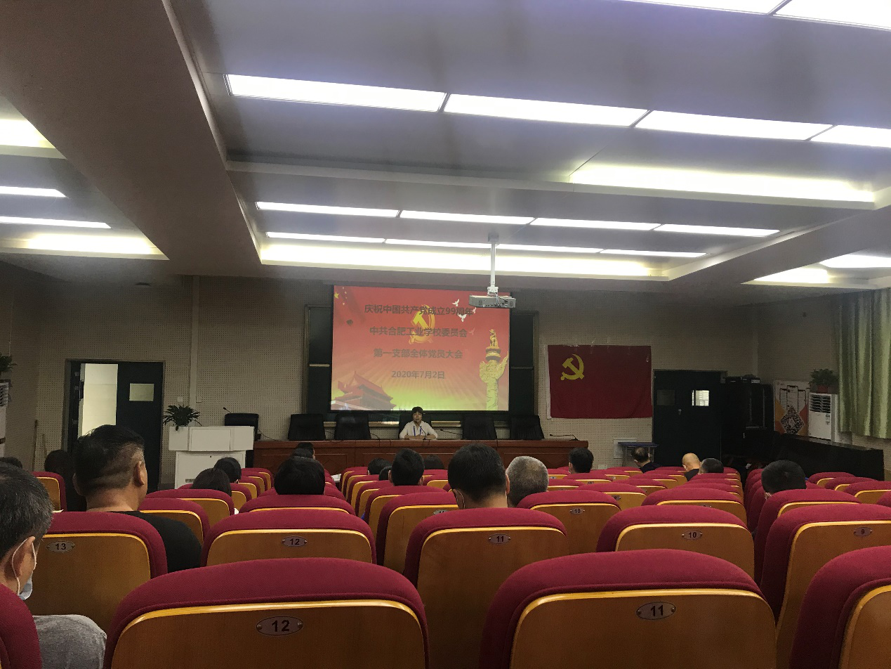 7月2日下午,我校第一支部在经信学部三楼阶梯教室召开全体党员大会,以主题党日方式热烈庆祝中国共产党成立99周年。校党委委员、副校长孙健同志以普通党员身份参会。