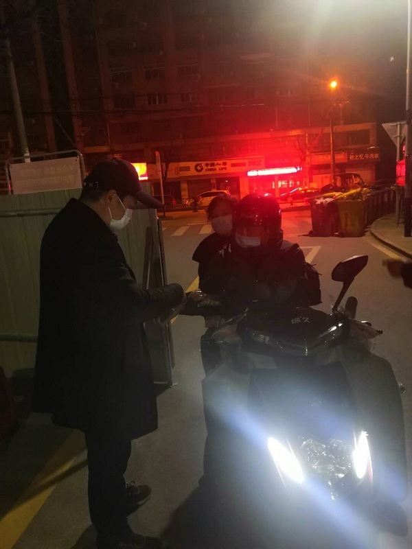 唐德旻同志“每天配合派出所、街道例行检查,看望居家隔离人员,感谢蒋主任送来口罩,手套,酒精,并代表王书记慰问我们下沉工作人员,在此衷心谢谢学校领导对我们的关怀,也激励我们全体下沉人员好好工作,争取早日战胜疫情。这两天外地返肥人员太多,一天都十几个人,工作任务繁重。”唐德旻同志有时会拿泡面充饥,作为一名老党员,唐德旻同志的敬业精神值得点赞。