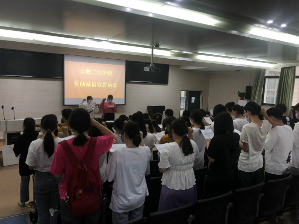 6月23日,我校在经信学部三楼会议室召开了以“诚信 守信 报国”、“金融安全与诚信教育”为主题的资助诚信讲座。讲座中,梁天悦老师首先以“诚信”为题教育同学们诚信对人生发展的重要影响;随后讲解了国家资助政策和征信政策,帮助学生了解资助政策,认识诚信贷款、诚信做人,引导学生自省其身。最后学生代表上台郑重宣读诚信倡议书,号召全体学生要诚信做人,学会感恩。
