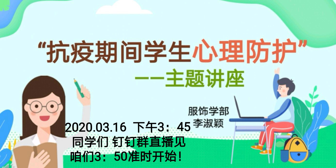 突如其来的疫情影响了中国社会的方方面面,也给同学们的学习、生活造成了前所未有的压力。3月16日下午第三节班会课,我校服饰学部学前二组在牛方格教研组长精心组织下,李淑颖老师首次在“钉钉群”直播里,面向学部近1500多名学生和部分老师开展了特色教研活动——“抗疫期间学生心理防护”讲座。本次活动的目的是在当前疫情下,对于长期宅家对同学们产生的情绪波动,疏导他们的线上学习压力、亲子关系压力等问题。正真做到“停学不停教、停学不停研”。