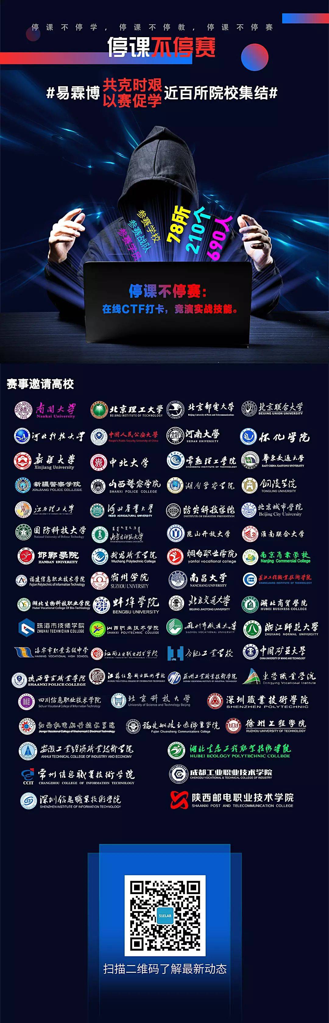 童亚运老师为不影响学生白天正常的网课,每天收看奇安信组织的“网络安全”直播课,并录屏,整理,将最新的知识上传网上供学生空余时间下载学习。张杨老师无论同学的学习、直播课、会议等每天全天候在网上陪伴我们的实训队员。魏飚老师在寻找各种资源,为学生搭建平台上走得更远一些,学生的竞技水平,是靠平时的训练和比赛积累出来的,魏老师为了维持这批学生竞技水平,想办法让学生走出校门,多参加比赛。