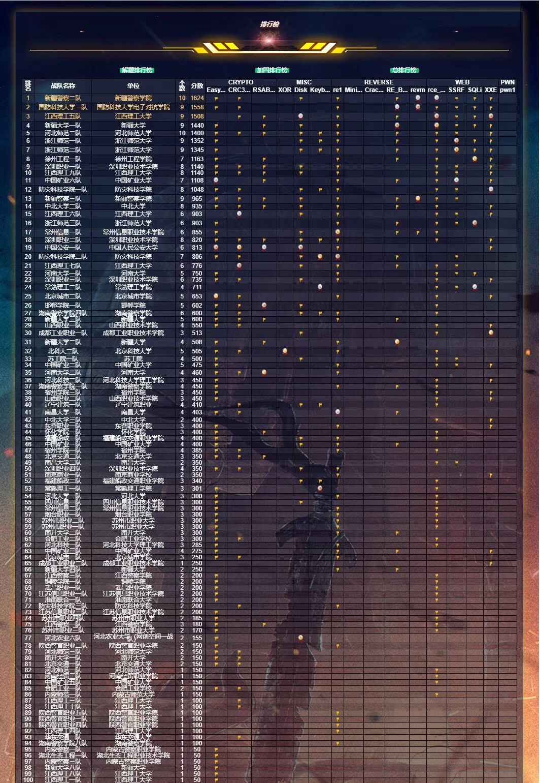 在3月27日的南京红客学院举办的全国网络安全(线上)邀请赛中,我校两队选手参加了比赛,在160支本科、高职队伍中,我们做为唯一的中职学校参赛,取得了63名和64名比较好的成绩。通过这次异于中职赛项的考核内容的CTF比赛,能与本科、高职的同台竞技,取得如此的比赛的成绩,极大增强了师生的自信心,对后面两场比赛充满期待。