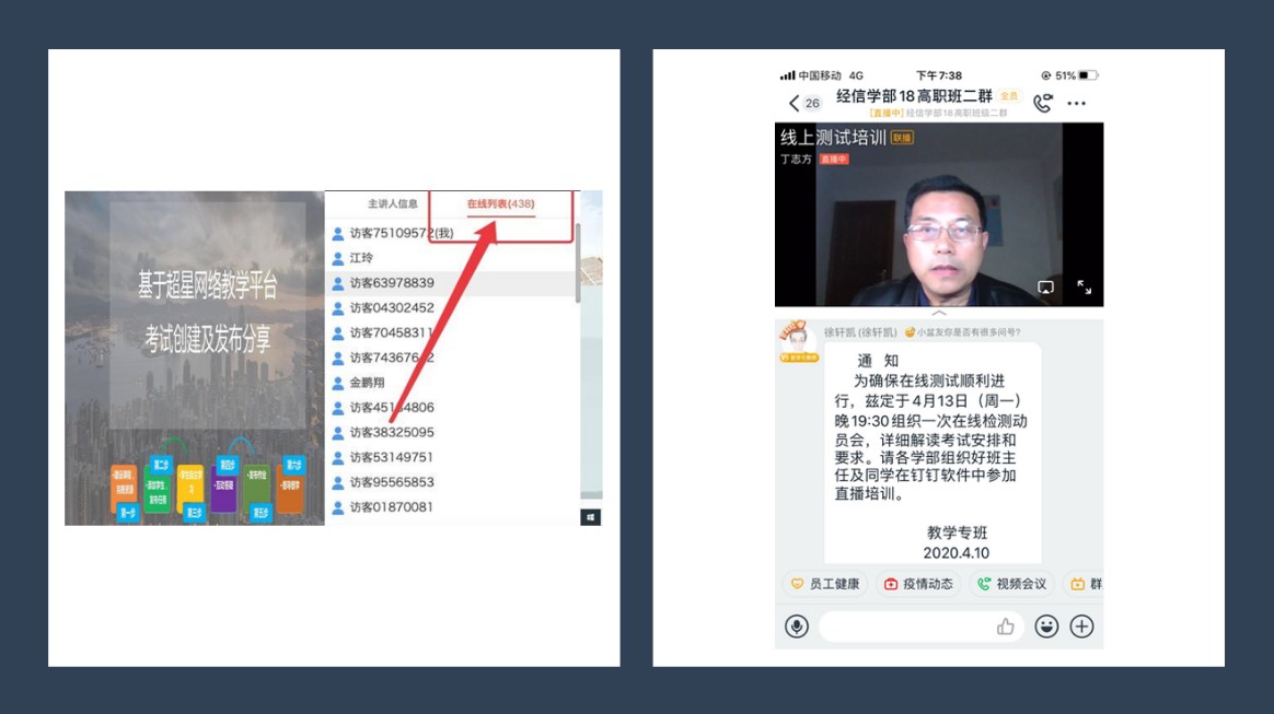 4月7日晚8点,我校对全校430余名教师利用教学平台开展线上教学检测进行专项校本培训,为即将开启的疫情期间云端测试做好技术准备。