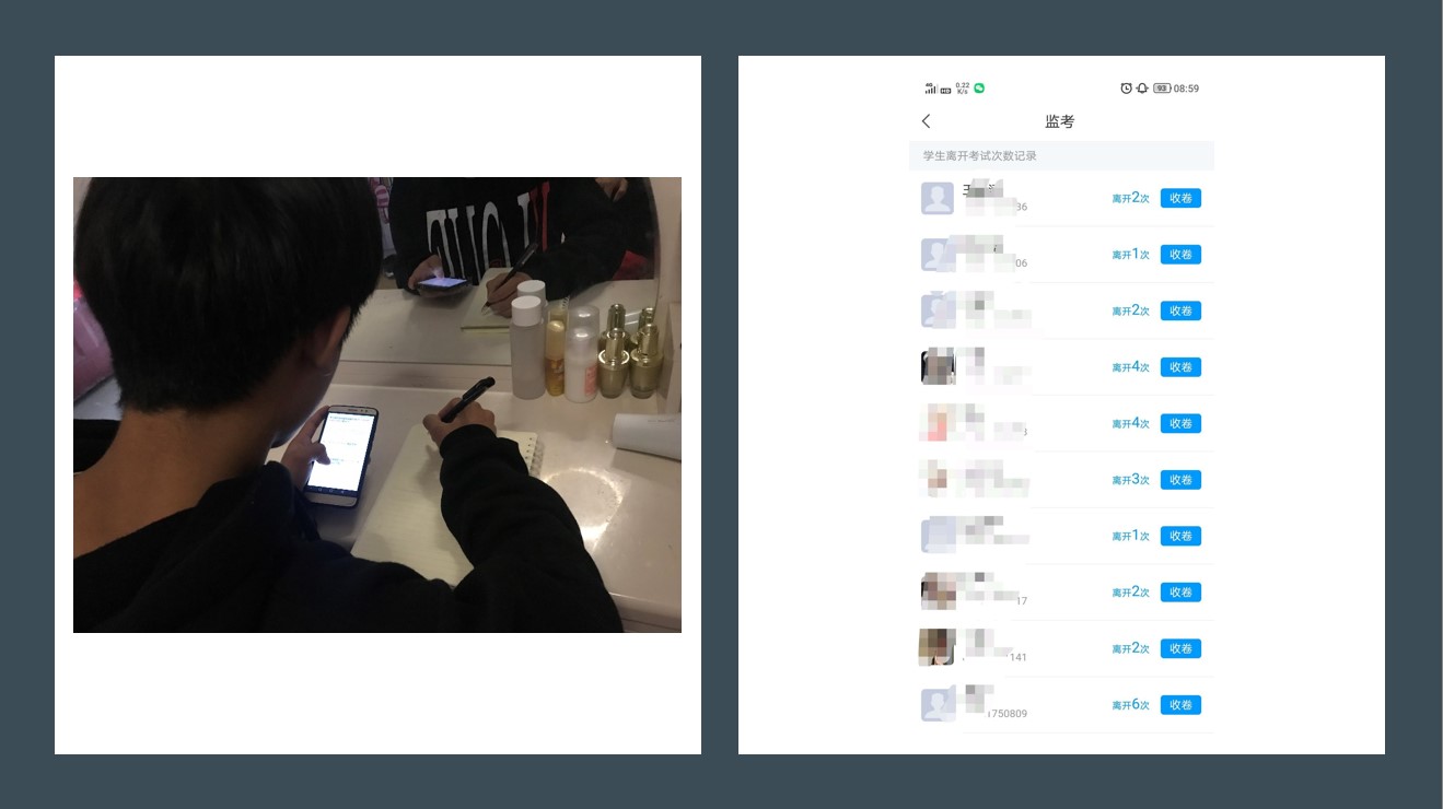 检测过程中,教师可对学生的答题情况进行在线监控,实时掌握学生作答时的离开记录和交卷情况,足不出户也能把控全场。学生提交试卷后,系统自动批阅客观题并显示分数。手机端批阅还可自动跳转到下一份,大大节省教师批阅时间。