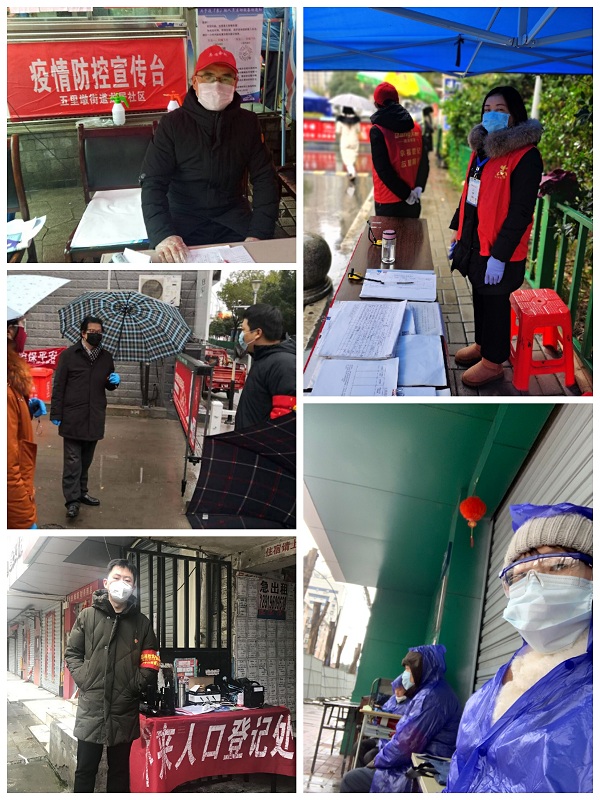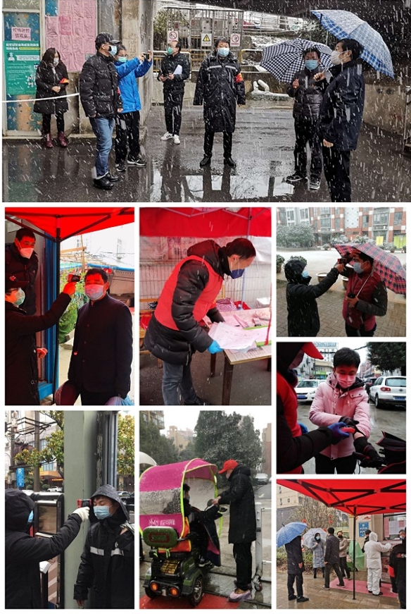 田闽侠、蔡雪勇、蔺大胜等同志默默拿起铲锹弯腰铲雪,为市民安全出行开辟通道。李国辉、陈永召、唐德旻、于敬东等同志严格执行工作纪律,开动脑筋优化工作方法,对进出人员检查、登记,配合社区开展抗疫宣传教育活动。卫星、张超等同志值班到深夜,坚持一个个给车库进来人员测量体温、询问登记。共青团员蒯家柢并不因为自己校聘教师身份而置身事外,最年轻却勇挑重担,探访隔离户……